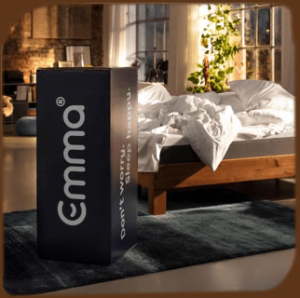 El colchón Emma se entrega en una caja de cartón de 38 x 38 x 110 cm en los tamaños Individual y Matrimonial.